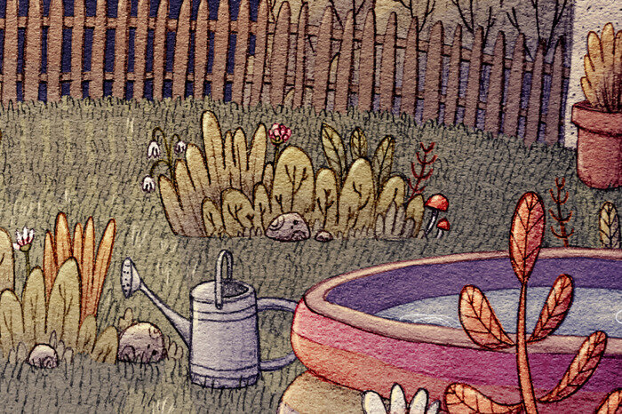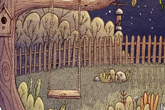 Until they reached a garden with a trampoline and pool.